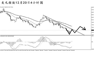 美元指數(shù)將日線圖前方低點79.55跌破之后發(fā)力下行,短線價格受制于下降趨勢線的阻力,下落的主趨勢保持完好。從空間上看,美元指數(shù)仍具備繼續(xù)走弱的條件。但短線價格發(fā)起了一定力度的上沖,若美元指數(shù)升破79.50,預計將展開一波較為明顯的上調。目前繼續(xù)做多非美貨幣需要謹慎。