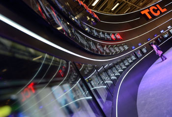 2012年柏林消費電子展上,一名參觀者在TCL集團的展臺參觀。記者 馬寧 攝
