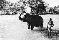 下午,驕陽似火,好在康提近郊的馬哈維利河水不時(shí)把涼意送到人的心里。正午過后,從清晨開始工作了大半天的大象們來到河邊,隨著主人的吆喝聲在水里翻著身,讓主人用椰子殼和肥皂幫它們沖刷掉身上的泥污,享受一天中最快活的時(shí)光。碰到游人走近,牧象人還會(huì)讓大象從河里站起身,沖人行禮,用鼻子吸起水來,像洗淋浴一樣噴到自己背上。