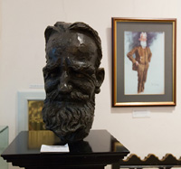 眼前的王爾德和想象中很不一樣,他手里拿著一朵綠色的康乃馨,那玩世不恭的神情,似乎洞察世事。這位生于都柏林、就讀于圣三一的唯美主義藝術(shù)運(yùn)動(dòng)的倡導(dǎo)者與實(shí)踐者,是著名作家、詩人、戲劇家。他一生追求唯美,向往自由,半世的桀驁不馴,卻最終客死他鄉(xiāng)。王爾德是一個(gè)謎,他有著自相矛盾的性格,在他那俊美面容的背后,更有一顆不羈的心靈。據(jù)說他生前是個(gè)生活方式古怪的人,他穿的衣服從來不在普通的裁縫那兒定做,而是從戲服供應(yīng)商那兒買,他衣服的紐扣上也常玩出各種花樣,有時(shí)候別百合,有時(shí)候別綠色康乃馨——百合是唯美主義的象征,綠色康乃馨則暗示同性戀。他在公共場(chǎng)合舉止怪異,還曾犯下猥褻罪。就是這樣一個(gè)花花公子,卻寫下過《快樂王子》等純真的童話,那是他在一家時(shí)尚雜志任職時(shí),給兩個(gè)兒子寫的小故事。他讓與他同時(shí)代的人們對(duì)他愛恨交織。