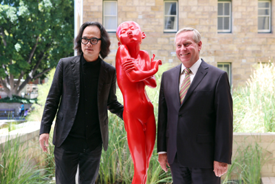 近日,中國(guó)雕塑家陳文令作品贈(zèng)送儀式在澳大利亞西澳州立美術(shù)館前舉行,西澳州州長(zhǎng)科林·巴內(nèi)特代表西澳政府與陳文令一同揭開(kāi)雕塑《童年,早晨》的面紗。