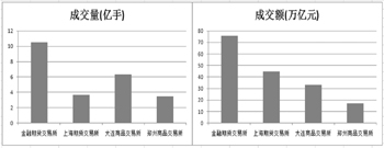 在四大期貨交易所中,中國金融期貨交易所成交金額最大,占總成交金額的44.32%,上海期貨交易所緊隨其后,占據(jù)四分之一左右市場份額。受美國干旱影響,豆類油脂品種大幅波動,市場交投活躍,大連商品交易所的成交量和成交額增幅最為迅猛,接近翻番,尤其是豆粕,成交量放大超過5倍。