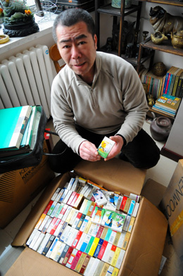 走進(jìn)高建一位于吉林省長(zhǎng)春市的家,他迫不及待地向記者展示他45年來收藏的各種煙盒、撲克、錢幣等。三個(gè)書架擺放著顏色各異、國(guó)別不同的幾千種煙盒!捌鸪跷也皇翘匾馐占療熀,純是兒時(shí)的玩物!备呓ㄒ徽f,“小時(shí)候經(jīng)常用煙盒做成‘煙噴兒’吹著玩,單調(diào)的童年生活培養(yǎng)了收集煙盒的興趣。”