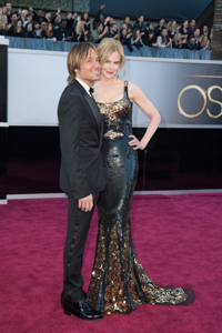 妮可·基德曼與丈夫基思·厄本(圖二)來(lái)了。基德曼的出現(xiàn)引起現(xiàn)場(chǎng)一片驚叫,穿著深色閃光長(zhǎng)裙的她滿臉笑容。一旁的厄本雖從身高到名氣都不如嬌妻,照樣一臉幸福,甘做護(hù)花使者。