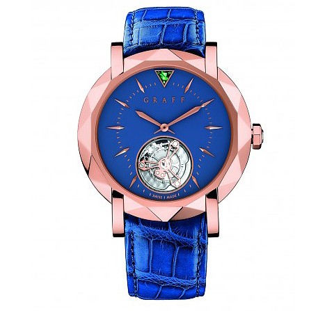 腕表備有玫瑰金、鉑金和最新推出的千足鉑金鑲鉆款式,配以白色、黑色或深藍色表盤,別具創(chuàng)新,成為Graff復雜腕表的又一杰作。