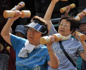 “我耳朵不好使,眼睛也看不清,渾身是病,”87歲的日本老人鎮(zhèn)元悅子(音譯)說,“但我的精神仍然年輕。”