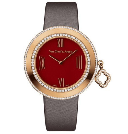 Charms紅玉髓腕表推出32mm及38mm兩款尺寸,更可與梵克雅寶其他的玫瑰金及紅玉髓珠寶混搭配戴。Charms紅玉髓腕表玫瑰金雙排鉆石表殼與幸運四葉圖騰吊飾、紅玉髓表盤、可替換式絹質(zhì)表帶。