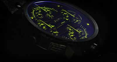 超大表盤(pán)腕表。此腕表表殼直徑驚人地達(dá)到66mm,搭載虹彩礦物玻璃表鏡和四組獨(dú)立計(jì)時(shí)機(jī)芯。每組機(jī)芯均可獨(dú)立運(yùn)行,方便同時(shí)掌握多地時(shí)間。黑色離子電鍍精鋼表殼搭配真皮表帶,霸氣外露之余更突顯剛?cè)釒詽?jì)的真我本色。