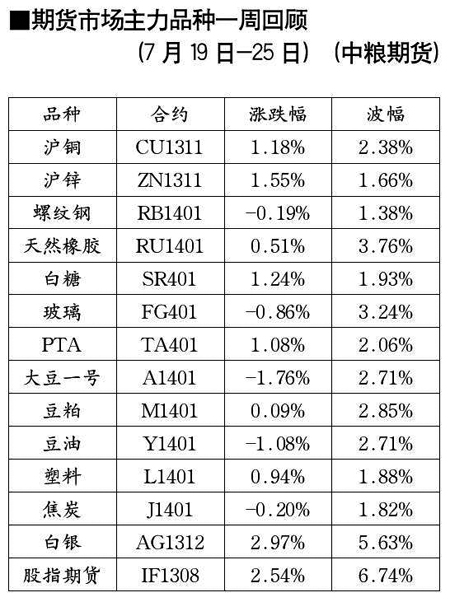 期貨市場(chǎng)主力品種一周回顧[7月19日-7月25日]