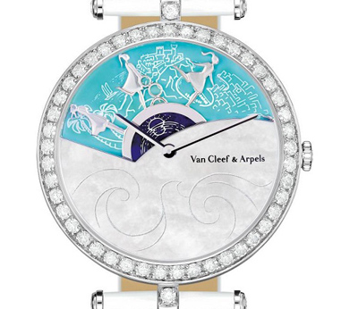 Arpels(梵克雅寶)的詩意復雜功能系列腕表。梵克雅寶的腕表早已超越了單純的對審美的追求和技術創(chuàng)新的范疇,她總是能以浪漫動人的創(chuàng)想巧妙的詮釋時間之美,這種詩意的詮釋已成為梵克雅寶的真正標志,沒枚腕表的設計均力求將這種詩意變?yōu)榭梢暤乃囆g品,向人們訴說著如夢似幻的動人故事。