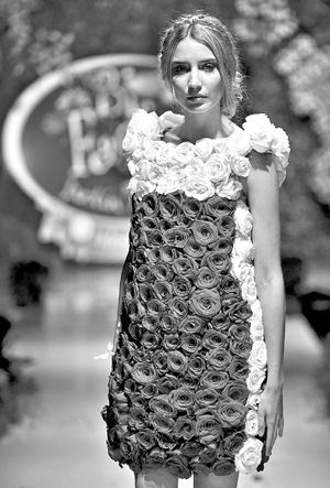 日前,在哥倫比亞卡利舉行的一場(chǎng)生態(tài)時(shí)裝秀上,模特展示充滿自然元素的服裝。