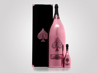 Armand de Brignac(黑桃A)確定將推出一款容量的粉紅香檳Rosé Midas,據(jù)稱其容量之大為史上第一,第一瓶將在位于拉斯韋加斯的Hakkasan餐館開啟,售價27.5萬美元,它相當(dāng)于40瓶常規(guī)750ml裝香檳,高4英尺,重45公斤。