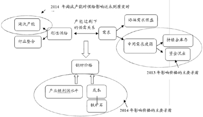 2014年鋼材市場(chǎng)的供需很可能呈現(xiàn)弱平衡狀態(tài),供給和需求均小幅上升,難有超預(yù)期表現(xiàn);影響價(jià)格的主要矛盾可能落在了成本和產(chǎn)業(yè)鏈利潤(rùn)水平的變化上,產(chǎn)能過(guò)剩的鋼材市場(chǎng)弱勢(shì)格局中,市場(chǎng)關(guān)注的是成本的支撐以判斷價(jià)格的底部,那么礦價(jià)的波動(dòng)很可能會(huì)是影響鋼價(jià)的主要矛盾。