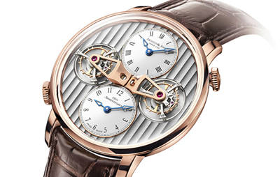 反映源遠(yuǎn)的品牌聲譽(yù)和具遠(yuǎn)景的目光。獨(dú)特而令人印象深刻的雙陀飛輪擒縱兩地時(shí)間腕表是集機(jī)械和優(yōu)雅美學(xué)的珍品。
