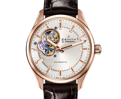 Primero旗艦系列的其他機芯一樣,它每小時可達到36000次的高振頻,相當于每秒鐘震動10次。機芯嚴絲密合、造型精致、精準可靠:每個夾板、結構和零件的位置都經(jīng)過了仔細研究,以優(yōu)化其性能。表殼直徑40毫米,采用玫瑰金或精鋼材質(zhì),銀色表盤上的開心設計能以與眾不同的方式,親眼觀察到El