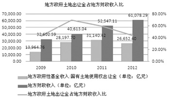 地方政府性債務(wù)對土地出讓收入的依賴程度較高,截至2012年底,11個省級、316個市級、1396個縣級政府承諾以土地出讓收入償還的債務(wù)余額34865.24億元,占省、市、縣三級政府負(fù)有償還責(zé)任債務(wù)余額93642.66億元的37.23%。地方債務(wù)規(guī)模還在不斷增大,而靠土地收入來償還地方債的占比又大,因此土地收入對地方政府來說至關(guān)重要。