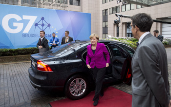 德國(guó)總理默克爾乘坐沃爾沃S80到達(dá)會(huì)議現(xiàn)場(chǎng)
