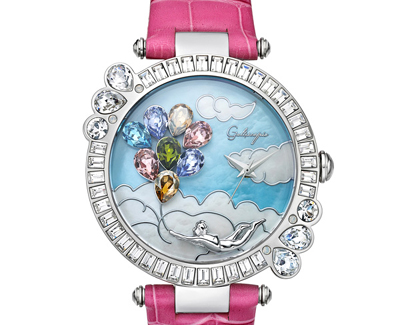 Balloon童話夢飛翔」系列,既秉承品牌所堅(jiān)持以童夢的設(shè)計(jì)理念,別出心裁地用上珍珠白貝母幻化成蔚籃色的天空于表面設(shè)計(jì)上,晶瑩剔透的Galtiscopio迦堤招牌「GP