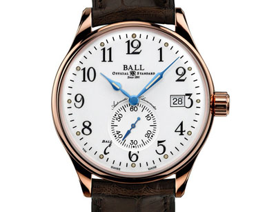 Chronometer)字樣,證明此腕表的精準機芯已獲瑞士天文臺(COSC)認證。此外,此表款的所有特征,包括阿拉伯數字的刻度、白色搪瓷面盤、經過特別切割的指針及在六點鐘位置的小面盤,其設計靈感來自品牌首枚由鐵路人員佩戴的短表煉懷表。而面盤上「7」時的字樣刻度更是由品牌名稱「Ball
