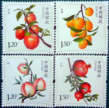 日前,中國郵政發(fā)行我國首套帶有水果香味的《水果(一)》特種郵票。該套郵票共4枚,分別為蘋果、桃子、石榴、金橘,全套面值5.4元。郵票印制時根據(jù)四種水果特有的果香增加了香味油墨,人們欣賞郵票時能聞到陣陣水果香味,用手輕輕摩擦郵票表面味道將更加濃郁。