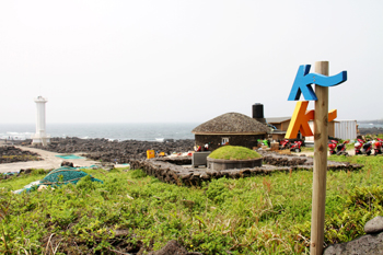 海邊“偶來小路”景色最好,日夕尤佳。海風(fēng)拂面,浪花拍岸,紅日西沉。岸邊綠草掩映中有很多路人隨手用石塊壘成石塔,濟州當(dāng)?shù)厝苏f為祈福之用。更為高聳的是用玄武巖堆積的濟州傳統(tǒng)燈塔,待到太陽落山時,漁夫會用魚油點火,照亮歸程。