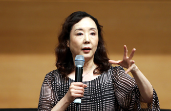著名作家嚴歌苓在香港書展“名作家講座系列”上演講。記者 李鵬/攝