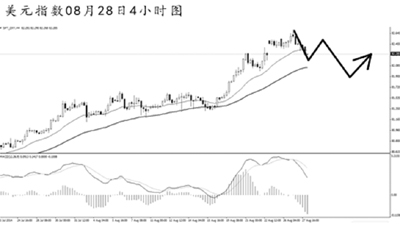 美元指數(shù)經(jīng)過高位調(diào)整之后重新拾得跌勢。日線圖上看,82.65的道氏高點(diǎn)阻力并沒有被順利升破。4小時圖,均線系統(tǒng)保持依托狀態(tài),道氏點(diǎn)支撐在82.00一線,美指要想展開進(jìn)一步的下行必須將此位置跌破。短線空頭力度已經(jīng)明顯展現(xiàn),此前的MACD頂背離信號發(fā)揮了效果,預(yù)計后市美指仍有繼續(xù)走弱的風(fēng)險。
