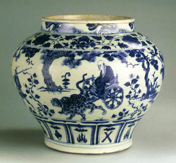 2005年倫敦佳士德拍賣會上,一件“鬼谷子下山”瓷罐橫空出世,以2.3億元人民幣的成交價驚動了世界。這件瓷器將中國著名的青花瓷推舉到了一個難以到達的高度,隨后,一股瓷器熱橫掃中國。 |
