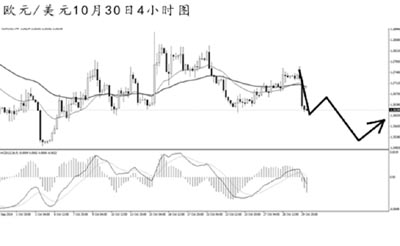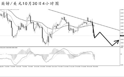 英鎊兌美元向上挑戰(zhàn)下降趨勢線的阻力,但并未成功突破。4小時圖震蕩市特征仍很明顯,道氏高點阻力在1.6225,匯價始終未能升破此點位。短線空頭力度再度暴發(fā),1.5990的支撐已被跌破,預(yù)計后市英鎊將重新向1.5870的低點發(fā)起挑戰(zhàn)。