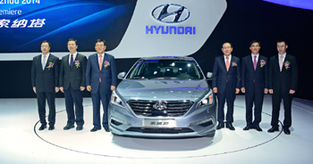 | 現(xiàn)代集團(tuán)及北京現(xiàn)代領(lǐng)導(dǎo)在車展現(xiàn)場 |