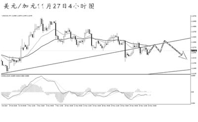 ▲美元兌加元跌破最近一條上升趨勢(shì)線之后并未能加速下行。從4小時(shí)圖上看,匯價(jià)的此波下調(diào)夾雜著很多的上漲動(dòng)能,運(yùn)行并不順暢。短線震蕩市特征十分明顯,目前操作此貨幣仍然具有較高的風(fēng)險(xiǎn)。