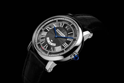 這款年歷腕表對于多項功能精巧而創(chuàng)新的布局極大地提升了表盤資訊的可讀性,所有資訊顯示一目了然。面盤布局分為三個層次:大日歷顯示,紅色指針指示著一周的星期,月份視窗,藍鋼指針繞著表盤上的黑色轉印羅馬數字時標轉動。Rotonde