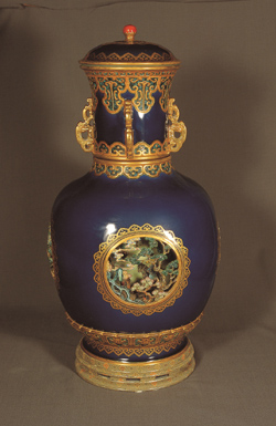 南京博物院鎮(zhèn)院之寶:清乾隆 藍釉描金粉彩開光轉(zhuǎn)心瓶