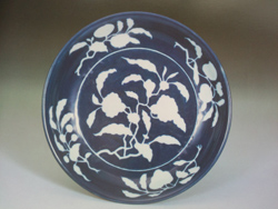 明宣德 藍地白花折枝花卉紋盤 洛克菲勒基金會藏