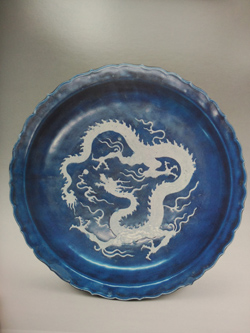 元 霽藍釉白龍紋菱口盤 直徑46厘米 伊朗國家博物館藏