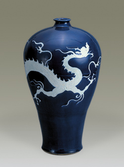 揚州博物館鎮(zhèn)館之寶:元 霽藍釉白龍紋梅瓶