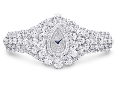 格拉夫更巧用匠心,把瑰麗優(yōu)雅的鉆石腕表結(jié)合在手鐲內(nèi),成為閃爍無匹的珠寶腕表。