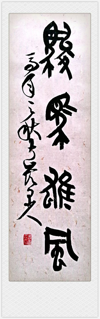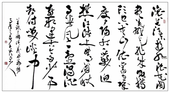 運筆或順或逆,或潤或澀,或俯或仰,或放或收,徘徊且馳騁,逐漸形成了自己筆法剛柔相濟,形體方圓兼?zhèn),線條瀟灑恣肆,布局嚴謹沉穩(wěn),章法氣脈貫通,意境高遠宏闊的藝術特色。從而,他完成了由羨書、習字到精研深悟的過程,并靠著自己的勤奮與靈氣,一步一個腳印地接近自己對書法藝術追求的目標,一次次艱難而充滿自信地圓著自己人生的夢……