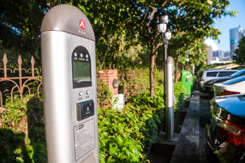 在屬于先期安裝的福田區(qū)蓮花二村里,記者在該小區(qū)靠近路口的停車場(chǎng)找到了十余個(gè)帶棚頂?shù)某潆姌,但是這些帶有充電樁的停車位已全被被劃為“固定車位”,占用車位的均為燃油車輛。而充電樁只有少數(shù)幾個(gè)顯示仍在工作狀態(tài),其余的均為黑屏。有居民表示,占用這些車位的并非小區(qū)居民,而是附近的企業(yè),帶充電樁的車位白天被外來車輛占用,晚上該企業(yè)會(huì)將車位鎖上,普通居民根本無法在此充電。而在同被要求安裝充電樁的星河時(shí)代、中海華庭等其他小區(qū),記者沒有找到安裝好的充電樁。