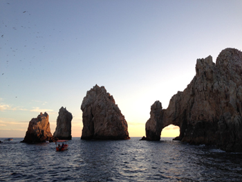 洛斯卡沃斯(Los Cabos)位于下加利福尼亞半島最南端,地處沙漠卻三面環(huán)海,一年四季陽光明媚。環(huán)境幽靜且民風(fēng)淳樸,來到這里可以真正體會到陶淵明古文中所描述的 “忘路之遠(yuǎn)近,忽逢桃花林”的境界?茽柼厮购:吞窖笤诖私粎R,由于太平洋海水冰冷呈深藍(lán)色,而科爾特斯海常年溫度維持在24攝氏度左右海水顏色透明而清澈,因此位于兩海交匯處的洛斯卡沃斯的海水呈現(xiàn)出美麗的天藍(lán)色且溫度更為宜人。西方人稱洛斯卡沃斯為“世界的盡頭”,佇立在這里,眼前盡是一望無垠的海洋,身后便是廣袤的大漠,自己仿佛置身于大地的盡頭一般。