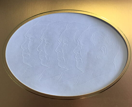 特別要提出的是,上世紀七十年代末期,當時對10元面額(大團結)的鈔券需求特別強烈,已形成了應用缺口。經過中國人民銀行批準,印制10元券的整版規(guī)格從原來的24K(整版24單小張聯(lián)接)改為35K(整版35單小張聯(lián)合),這樣,可以在水、電、汽消耗基本不變的情況下提高產品的生產產量約百分之五十左右。這對當時國民經濟的發(fā)展是個極大的促進。但是鈔票鈔券紙的水印位置有了根本的變化,由原來的豎向排列改為橫向排列,由于造紙機生產過程中紙張縱向延伸,橫向收縮,原來的模具已不能使用,必須重新制作一個新的變形方向的模具,而且生產出來的水印(天安門放光芒)要與原來的效果一致。這是一個技術性很強并且制作難度很大的工作任務。