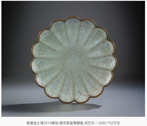 雖然古瓷市場(chǎng)的熱點(diǎn)目前仍在明清瓷器,但以宋瓷為代表的高古瓷器低迷的市場(chǎng)狀態(tài)正在逐年改變,精品面世屢屢振奮市場(chǎng)。2014年香港蘇富比春拍一件“北宋定窯劃花八棱大盌”以1.16億元成交創(chuàng)造了宋代瓷器的世界拍賣紀(jì)錄。今年4月的香港蘇富比又推出一件“南宋官窯青釉八方弦紋盤口瓶”,以9190萬(wàn)元拍出。低價(jià)位如今年香港佳士得春拍,估價(jià)30-50萬(wàn)港元的元明哥窯盤亦爆冷以880萬(wàn)港元(人民幣704.88萬(wàn)元)的高價(jià)成交。保利2015春拍,13世紀(jì)乾隆御題官窯貫耳小壺747.5萬(wàn)元成交。