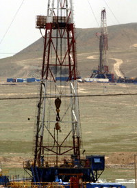 石油井架在新疆準(zhǔn)噶爾盆地鉆探。(本報資料照片) | 記者近期在西北調(diào)查發(fā)現(xiàn),以煤炭、石油、天然氣和電力為主導(dǎo)的能源產(chǎn)業(yè)近年來在西北地區(qū)發(fā)展迅猛,已成為支柱產(chǎn)業(yè),在這期間銀行信貸資金大量進(jìn)入能源領(lǐng)域,能源金融資金的集中度越來越高,銀行信貸資金繼房地產(chǎn)貸款、高校建設(shè)貸款后又出現(xiàn)了新的“壘大戶”現(xiàn)象,能源金融潛在的風(fēng)險正變得越來越大。