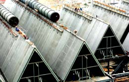 我國首臺綠色環(huán)保發(fā)電機(jī)組——山西大同二電廠二期工程的60萬千瓦直接空冷發(fā)電機(jī)組。新華社記者:馬毅敏