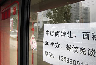 | 1月8日,杭州市鬧市區(qū)的一個房產(chǎn)中介公司打出了轉(zhuǎn)讓店面廣告。隨著近期二手房地產(chǎn)市場遇冷,一些規(guī)模小的房產(chǎn)中介紛紛退掉位于鬧市區(qū)的店面,轉(zhuǎn)而尋找成本更低的地段另謀發(fā)展。新華社記者