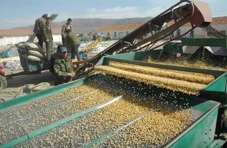 幾位農(nóng)民在中央儲(chǔ)備糧牡丹江直屬庫(kù)(林口縣)建堂糧庫(kù)國(guó)儲(chǔ)糧大豆收購(gòu)現(xiàn)場(chǎng)交售大豆。新華社發(fā)(張春祥攝) | 2008年我國(guó)玉米大豐收,玉米總產(chǎn)量高于消費(fèi)量,在金融危機(jī)影響下,玉米消費(fèi)在加工行業(yè)、飼料行業(yè)及出口方面都不順暢,玉米消費(fèi)需求不旺。專家認(rèn)為,如果今年?yáng)|北玉米繼續(xù)豐收,國(guó)內(nèi)玉米供應(yīng)將出現(xiàn)階段性過(guò)剩風(fēng)險(xiǎn),陳化糧的概念可能再次出現(xiàn)。