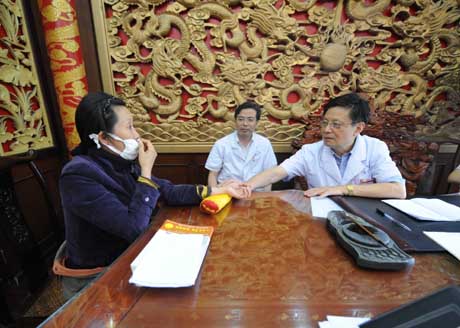 王琦(右一)在給患者看病。本報(bào)記者李文攝 | 十年前,只要有時(shí)間,王琦都要去馬路上盯著行人看。來來往往的人群在他面前一閃而過,王琦就在心里琢磨他常生什么病,今后可能會(huì)生什么病。如今,他研究的中醫(yī)體質(zhì)學(xué)不僅得到了國家的認(rèn)可,還為世界衛(wèi)生組織提出的今后醫(yī)學(xué)發(fā)展方向———“個(gè)性化”診療———提供了思路。
