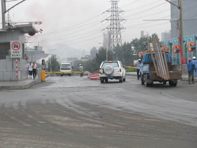 大貨車進(jìn)進(jìn)出出,10多根煙囪吞云吐霧。蒙蒙雨霧中,偌大的通鋼廠區(qū)繁忙而又安靜。如不親臨現(xiàn)場(chǎng),很難相信兩周前這里曾上演過(guò)一場(chǎng)致人非命的怨恨“泄洪”。唯一能夠找到的“潰口”蹤跡,是通鋼明珠廣場(chǎng)地面上,被涂料覆蓋但依稀可辨的標(biāo)語(yǔ):“建龍滾出通鋼”。