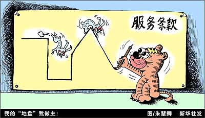 律師幫銀行審查貸款客戶,律師費(fèi)卻由客戶出。一個顯失公平的“霸王條款”,竟然耗費(fèi)了8年時間才被廢止。如今,消費(fèi)者不用再為房貸律師費(fèi)花冤枉錢了,但“霸王條款”還普遍存在于銀行、電信、房地產(chǎn)、公用服務(wù)、中介、金融、保險等行業(yè)或部門。 |
