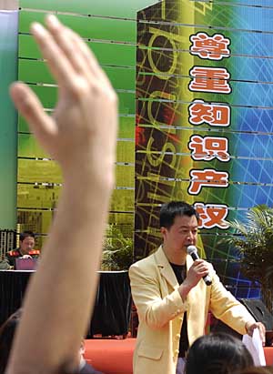 4月25日,為紀念“4·26”世界知識產(chǎn)權(quán)日,南京市在新街口商業(yè)街廣場舉行知識產(chǎn)權(quán)知識競賽,參賽的不僅有來自企業(yè)、學(xué)校、街道、部隊的代表隊,許多圍觀市民也踴躍加入到比賽中來。